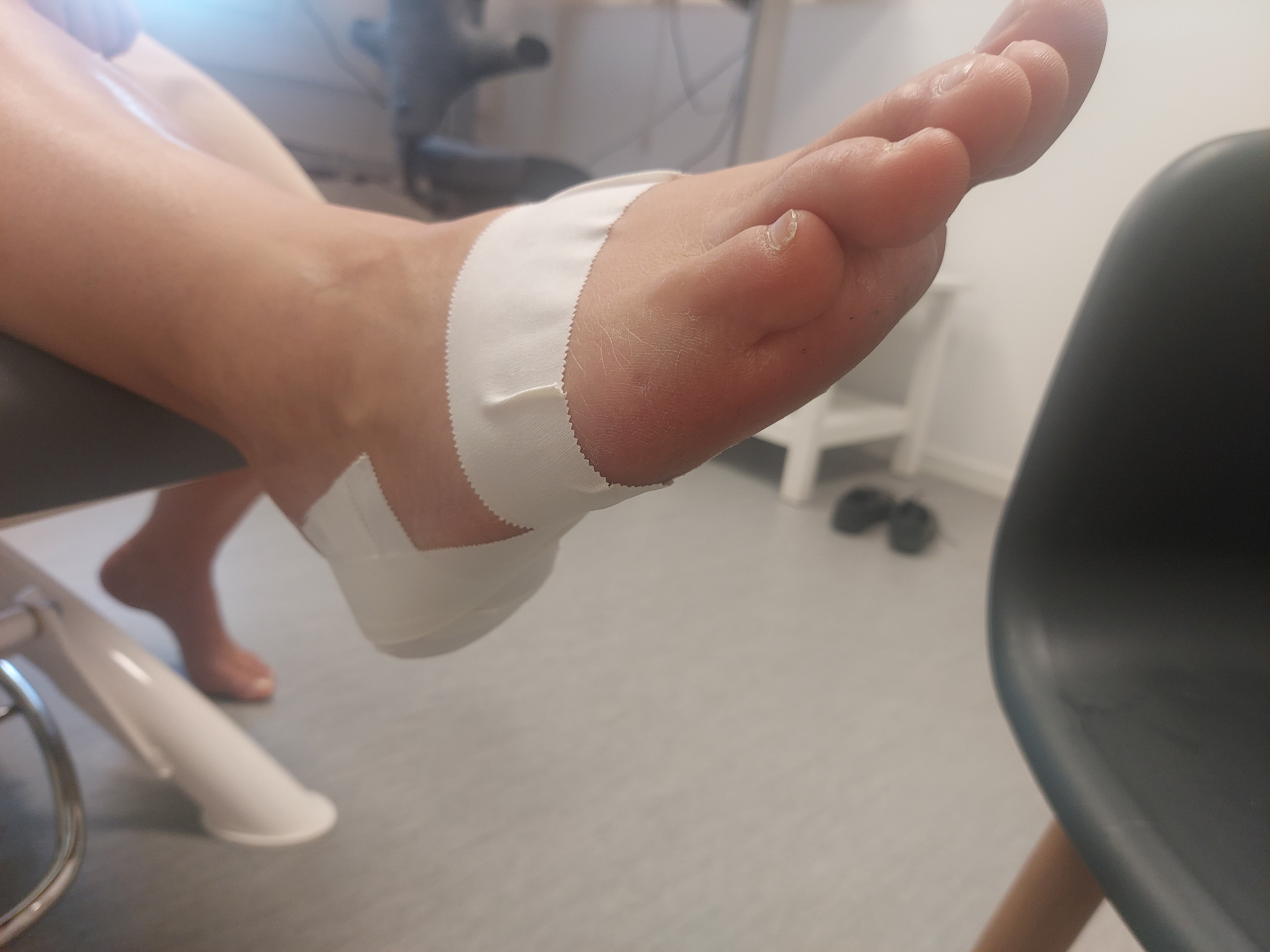 - Linda 1 längre remsa runt den främre delen av foten för att fästa teipen.